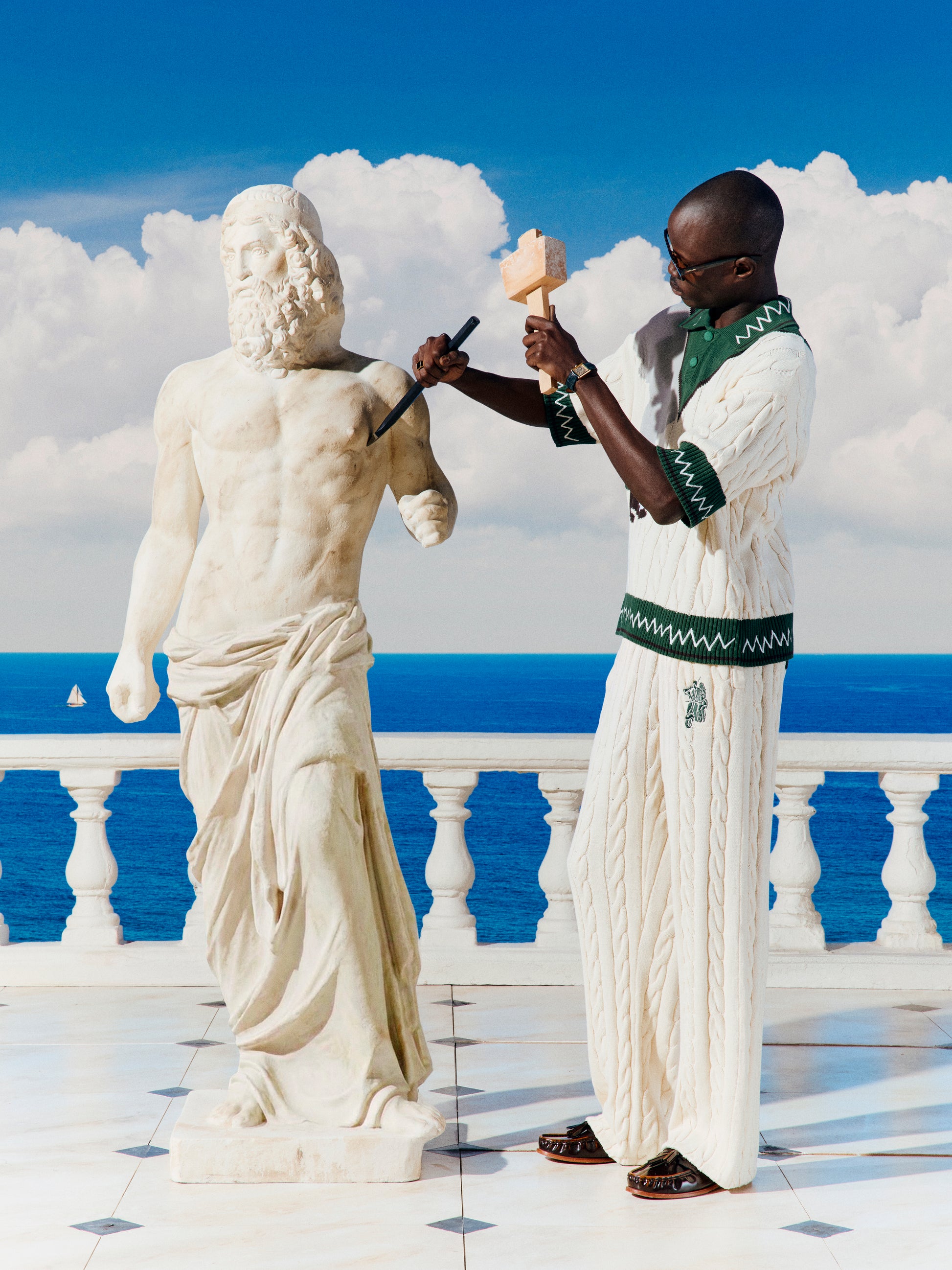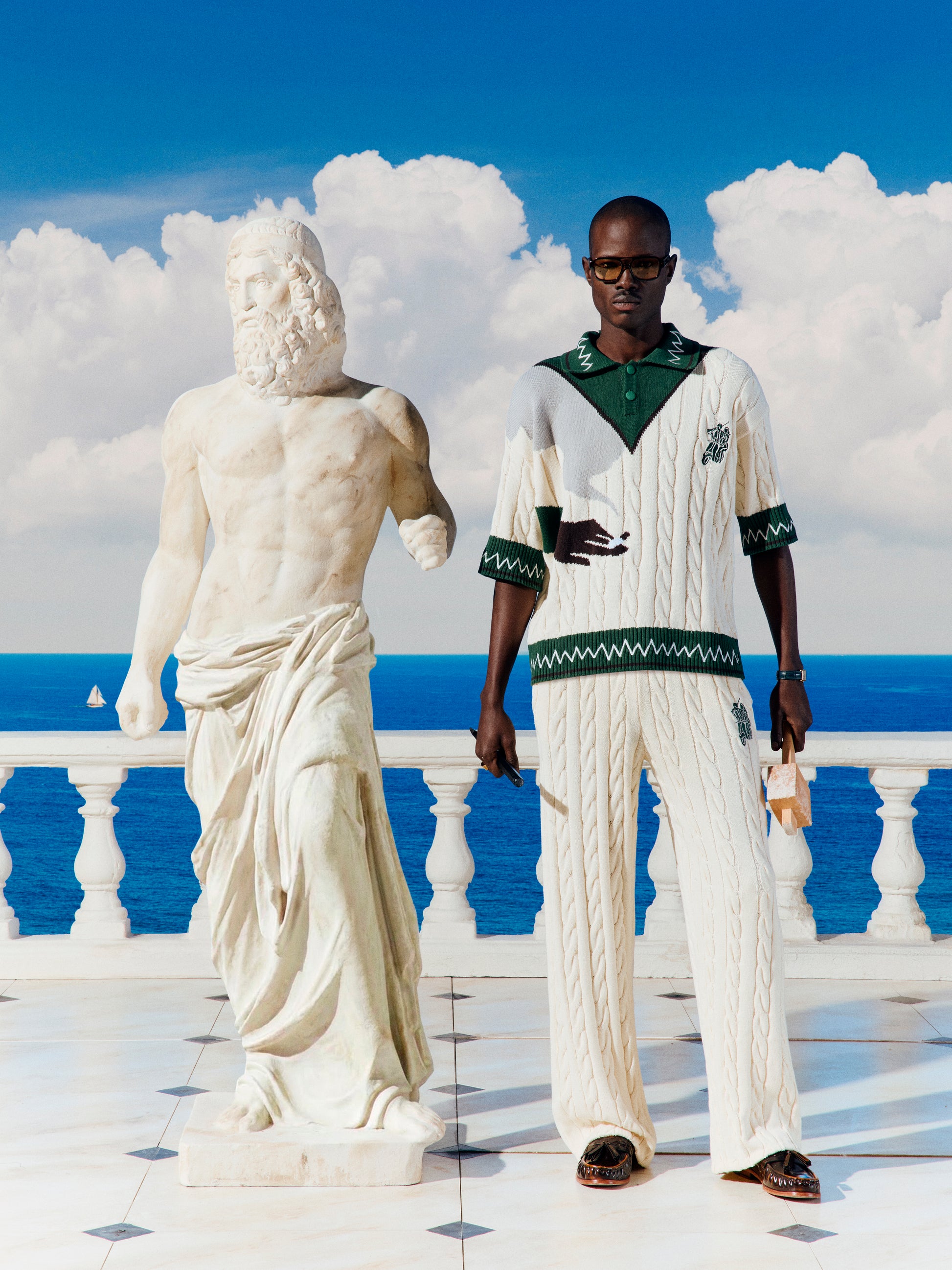 A Relaxed Cable Knitted Polo From Premium Cotton Yarn
