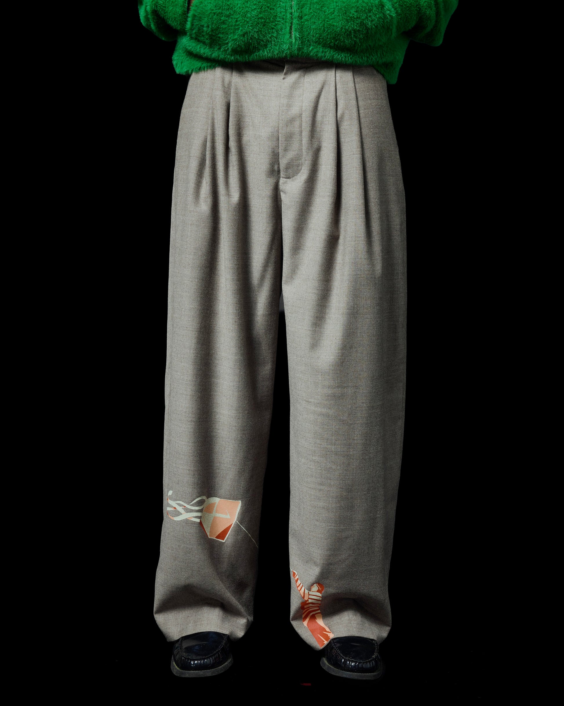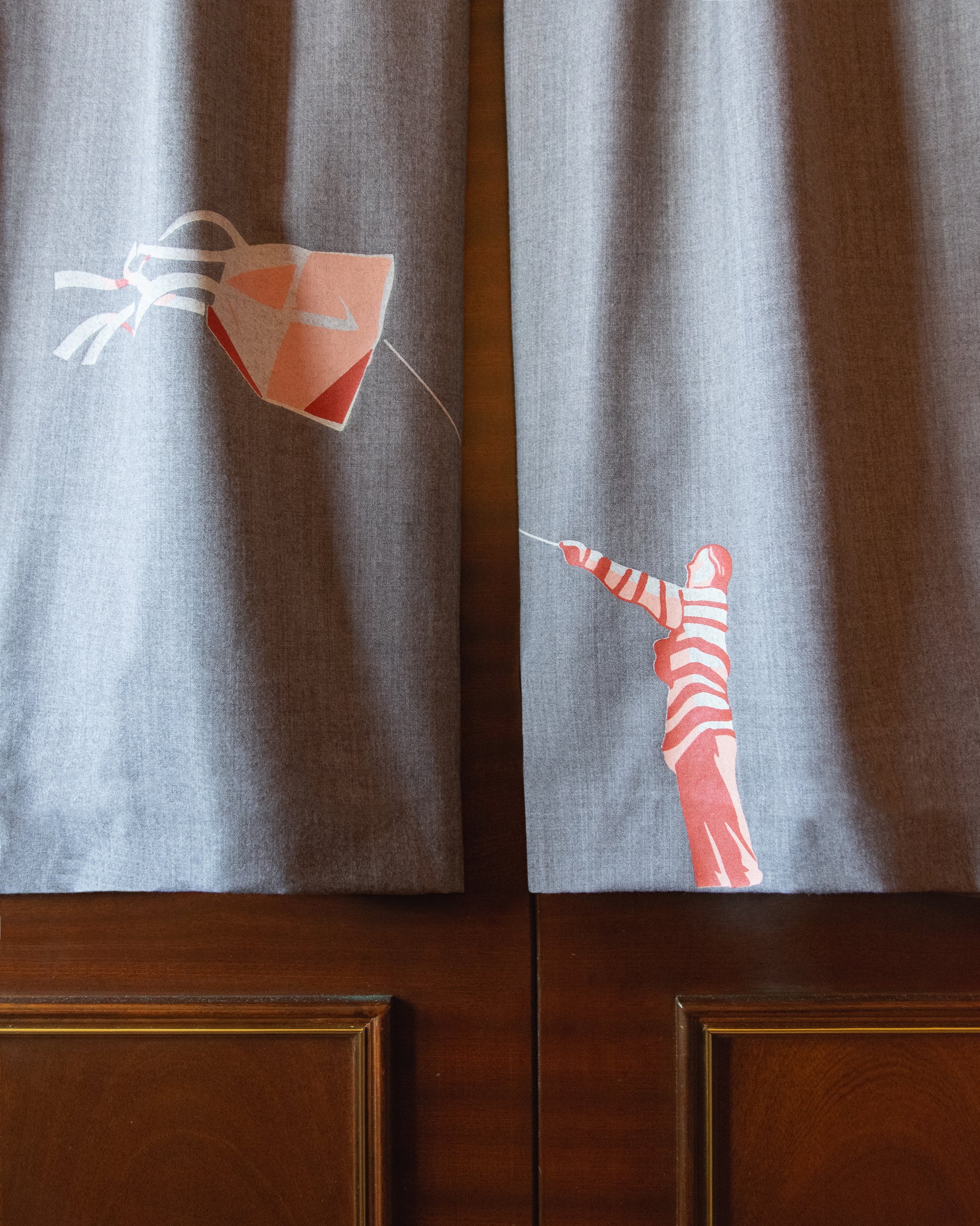 A Screen-Printed Child Flys A Kite Over Both Legs